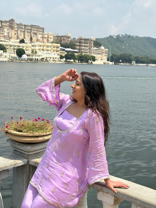 Lavender Festive Hand Work 3 Piece Coord